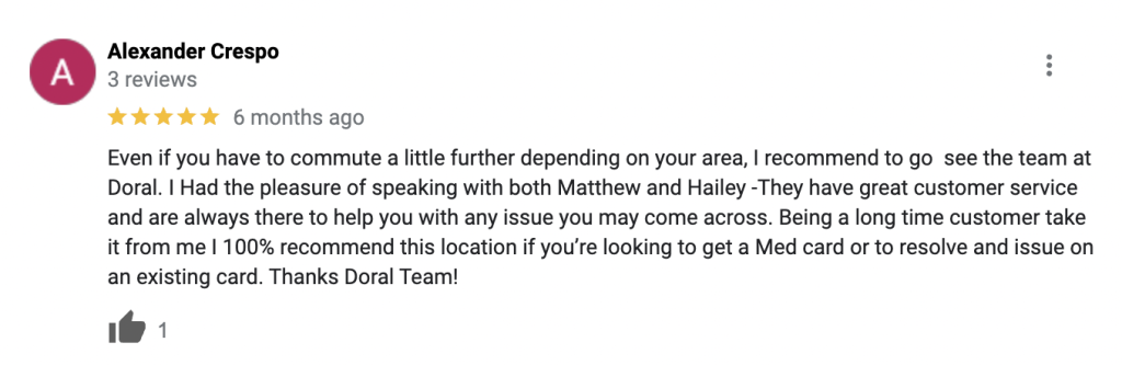Florida state law explicitly lists the medical conditions for which you can receive a medical recommendation for a medicinal card. Our team of medical experts will perform a health assessment to determine whether your condition qualifies as per Florida state law. Get in touch with us today to find out if you’re eligible for a Florida medicinal card recommendation.